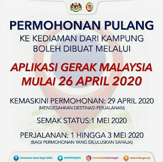 Permohonan Pulang Ke Kediaman Dari Kampung Boleh Dibuat Melalui