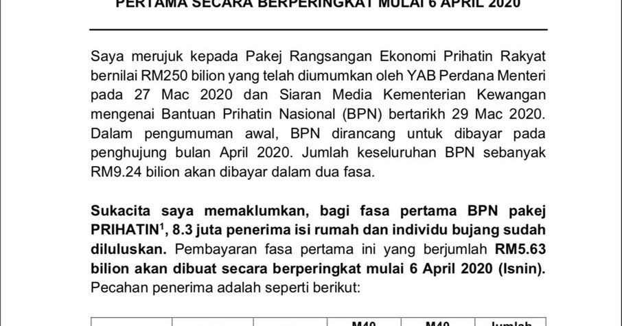 Bantuan Prihatin Nasional Pembayaran Bpn Fasa 1 Bermula 6 April