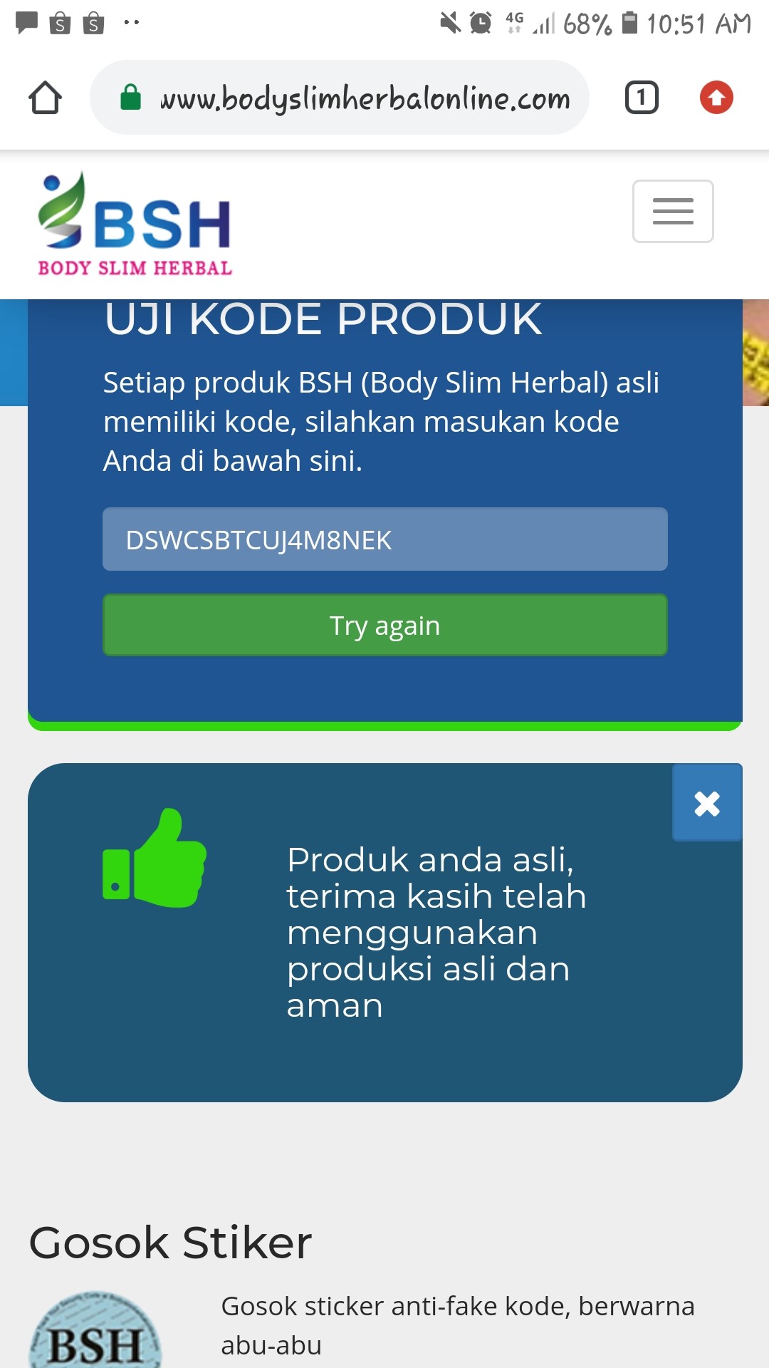 Jual Bsh Body Slim Herbal Original Bisa Cek Tracking Code