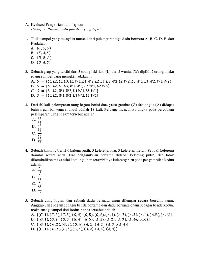 Soal Jawaban Mengenai Peluang Kelas 9 Be