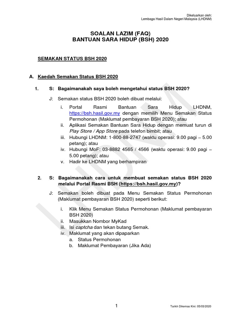Soalan Lazim Faq Bantuan Sara Hidup Bsh 2020