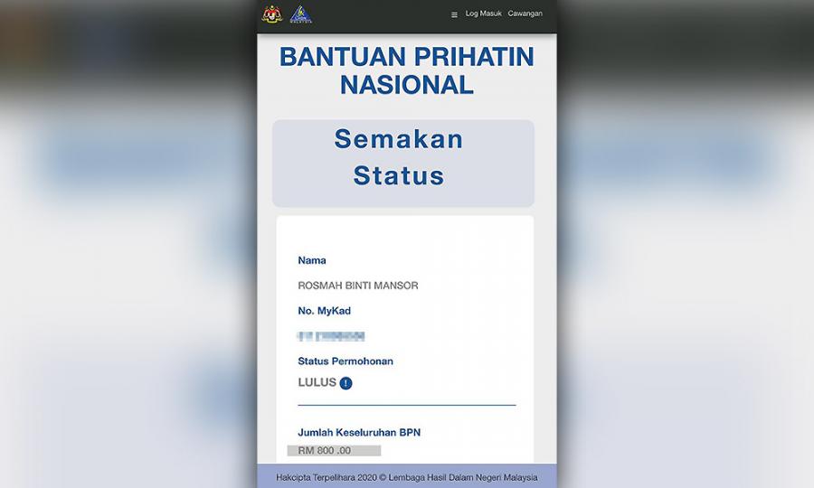 Semakan Kelulusan Bpn Bantuan Prihatin Nasional 2020