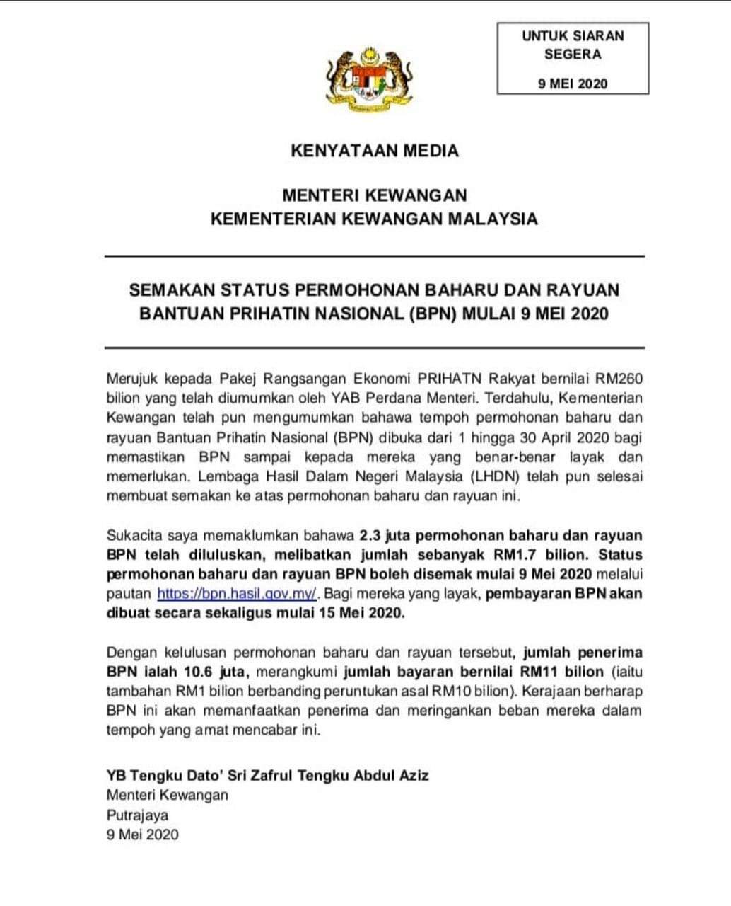 bantuan prihatin nasional semakan bpn